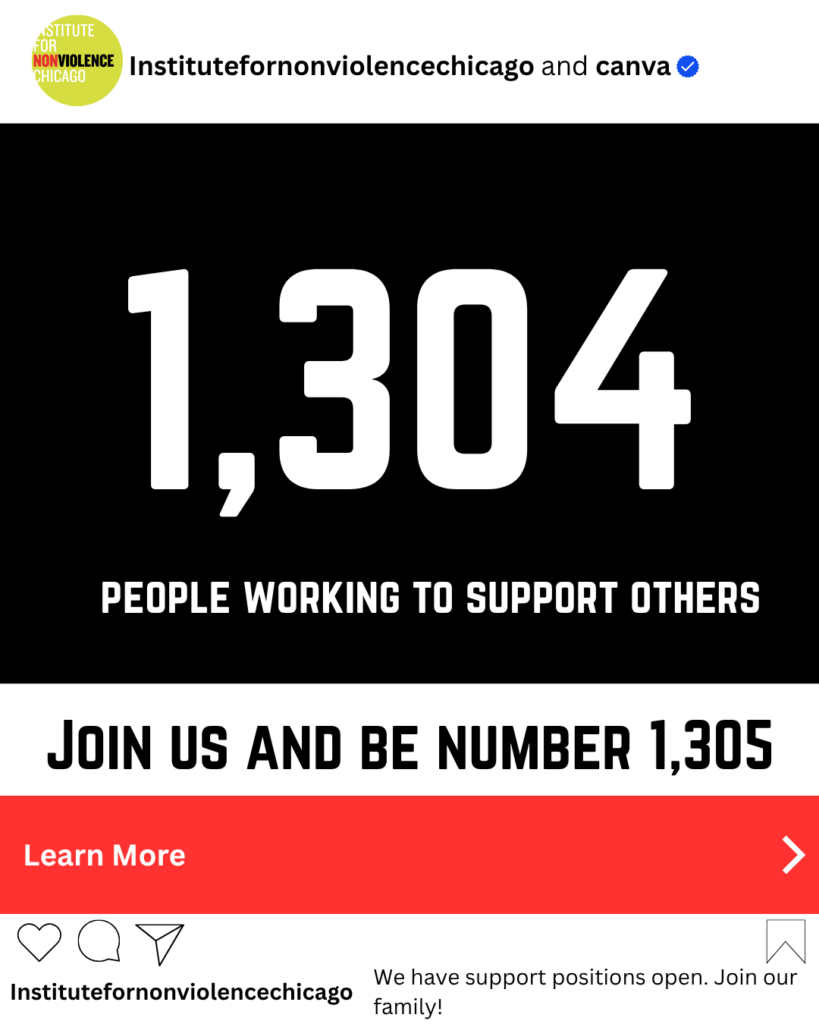 We are the Institute for Nonviolence Chicago. We work to make Chicago safe by rebuilding our communities since 2016. We work with community leaders, a team of full-time staff, and volunteers to prevent violence in our city, most especially gun violence. Additionally we offer programs for emotional support for victims of violence and education for those trying to walk a different path.